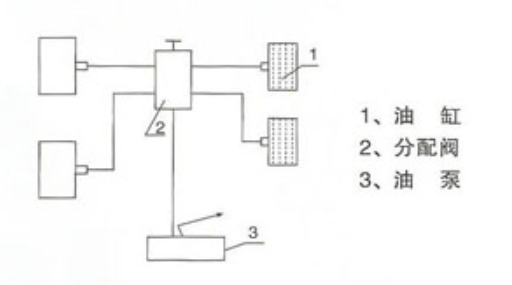 使用說明 電動泵: 一、用膠管把油缸與分配閥連接上(工四個油缸),然后把分配閥與油泵連接好:如圖下所示: